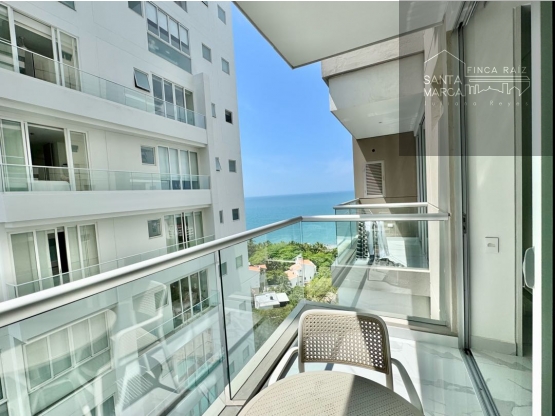 Aparta estudio tipo Loft en venta media cuadra de la playa en el sector hotelero de Santa Marta. Este apartamento cuenta con un espacio tipo Loft el cual se puede dividir por una puerta de madera, cocina integral, tipo americano, de la cual se puede desplegar una barra para almorzar. Algo que diferencia este apartamento de otros de la zona es que cuenta con dos baños completos muy buenos y un balcón.