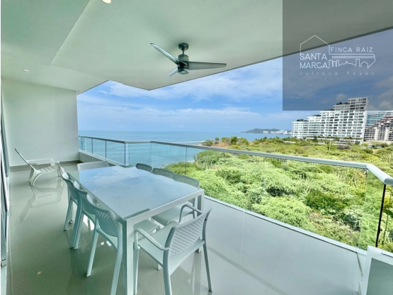 Apartamento de dos habitaciones, cada una con baño privado, sala comedor, cocina, zona de lavandería y un balcón con vista lateral al mar ubicado hacia el norte, el cual tiene acceso por cada una de las habitaciones y por la sala comedor.