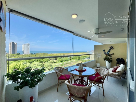 Apartamento en venta Con vista al mar en Pozos Colorados, Santa Marta. Ese apartamento cuenta con dos habitaciones, cada una, la habitación principal con salida al balcón, vista al mar y un vestier amplio, Sala, comedor, cocina, zona de lavandería, habitación auxiliar con baño privado, baños social. Su apartamento le corresponde un parqueadero para un vehículo.